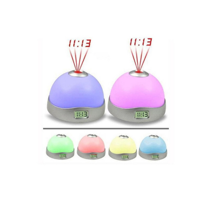 Ceas cu proiectie ora si stelara si alarma care afiseaza jocuri de culori in camera, jocuri alcatuite din toate culorile curcubeului, un produs fantastic, care trebuie sa fie prezent pe orice noptiera, raft, sau masa.