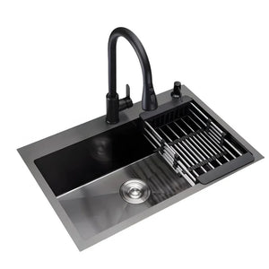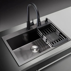 Descriere Produs: Chiuveta de bucătărie profesională multifuncțională HS7546 este realizată din oțel inoxidabil de înaltă calitate, finisată într-o elegantă nuanță de gri închis – negru. Cu dimensiuni generoase de 68x45 cm această chiuvetă adaugă atât funcționalitate, cât și stil bucătăriei tale.