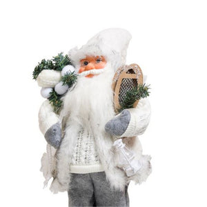 Adaugă un strop de magie festivă în casa ta cu acest Moș Crăciun elegant, de 45 cm, îmbrăcat în alb strălucitor! Figurina detaliată, cu haină texturată și felinar rustic, aduce un farmec aparte decorului de sărbători.