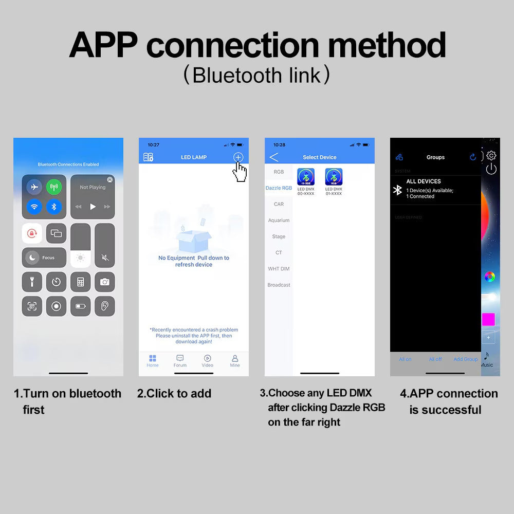 - contine o multime de culori si jocuri de lumini, ce pot fi controlate din telecomanda sau din aplicatie (instalati aplicatia pe telefon folosind codul QR de pe instalatie, activati bluetooth-ul telefonului si alegeti modul dorit)