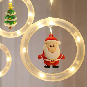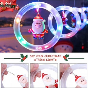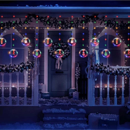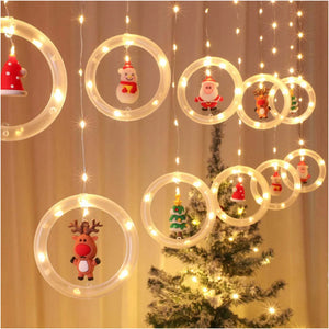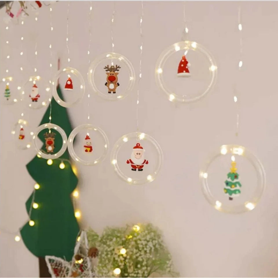 Instalatie perdea de lumini interior, cu 10 inele luminoase cu figurine, jocuri de lumini Led