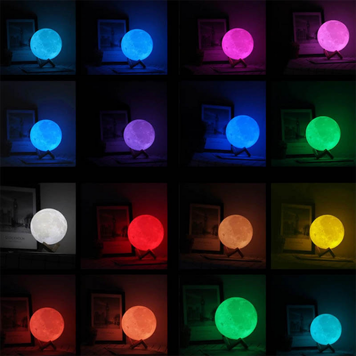Aceasta lampa de veghe tip luna 3D este alegerea excelenta pentru a obtine o lumina ambientala placuta si a va bucura de o seara linistita acasa. Lampa are un design deosebit datorita caruia este usor de incadrat in orice tip de decor al locuintei, conferindu-i o nota eleganta.