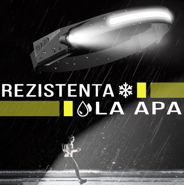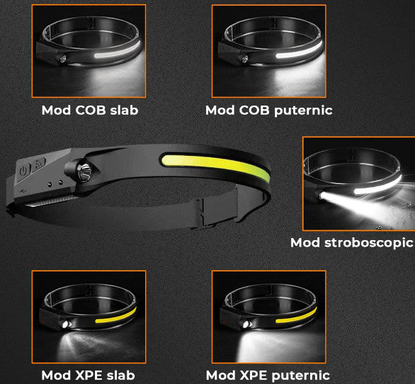 Lanterna de cap banda led cu acumulator, Unghi Larg de Iluminare, Led Puternic si Senzor Miscare