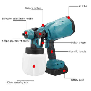 Fiind pe bază de acumulatori, pistolul de vopsit oferă libertate de mișcare, eliminând nevoia de cabluri și permițându-ți să lucrezi în locuri dificil accesibile.