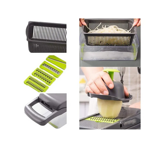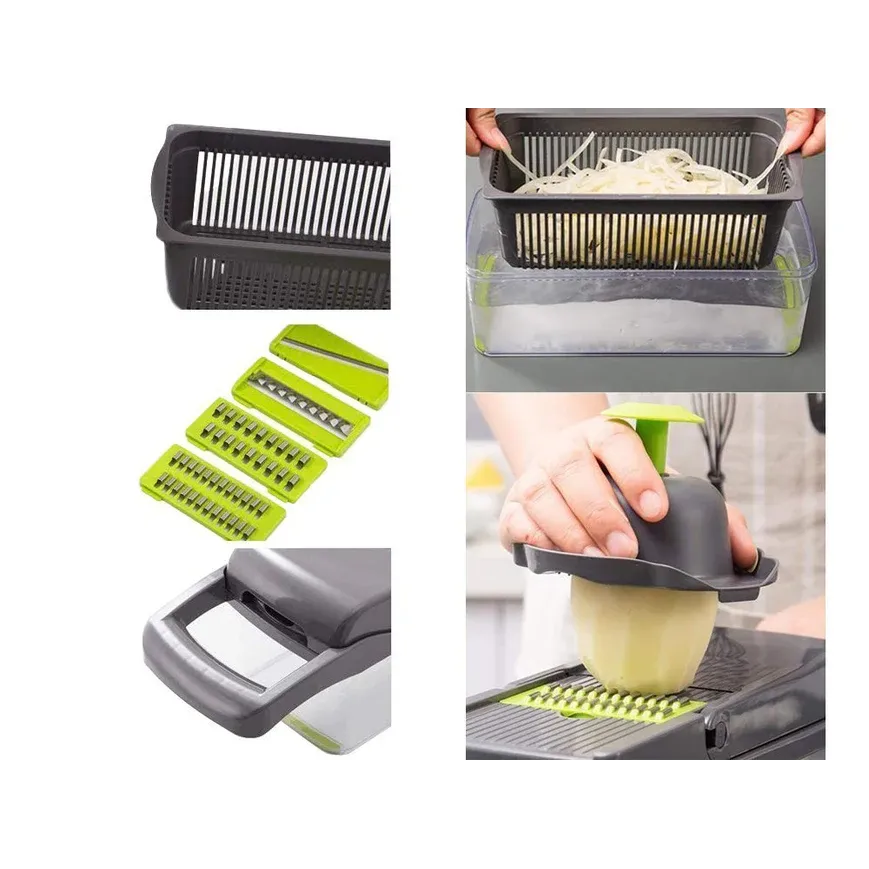 Razatoare Multifunctionala 14 Accesorii, Tocator Legume si Fructe, Lame Inox si Maner Protectie, Ideal pentru Bucatarie, Calitate Premium, Verde