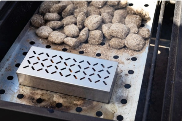 Un recipient metalic pentru aschii de lemn, o modalitate de gratar aromat. Se poate utiliza pe un gratar de carbune, lemn si gaz.