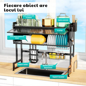 Functie multipla: Pe langa uscarea rapida a vaselor, raftul poate fi utilizat si pentru depozitare, maximizand astfel spatiul de lucru din bucatarie.