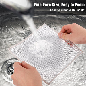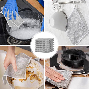 Redescoperă curățenia fără stres cu acest set de 10 lavete multifuncționale din microfibră metalică, ideale pentru vase, blaturi, chiuvete, aragazuri sau chiar legume! Realizate cu tehnologie avansată de țesere tip diamant, aceste lavete oferă o curățare intensă, dar delicată, fără zgârieturi, pete sau urme.