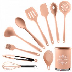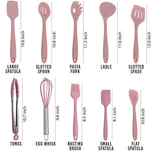 Set 13 ustensile de gatit din silicon, maner rezistent din bambus