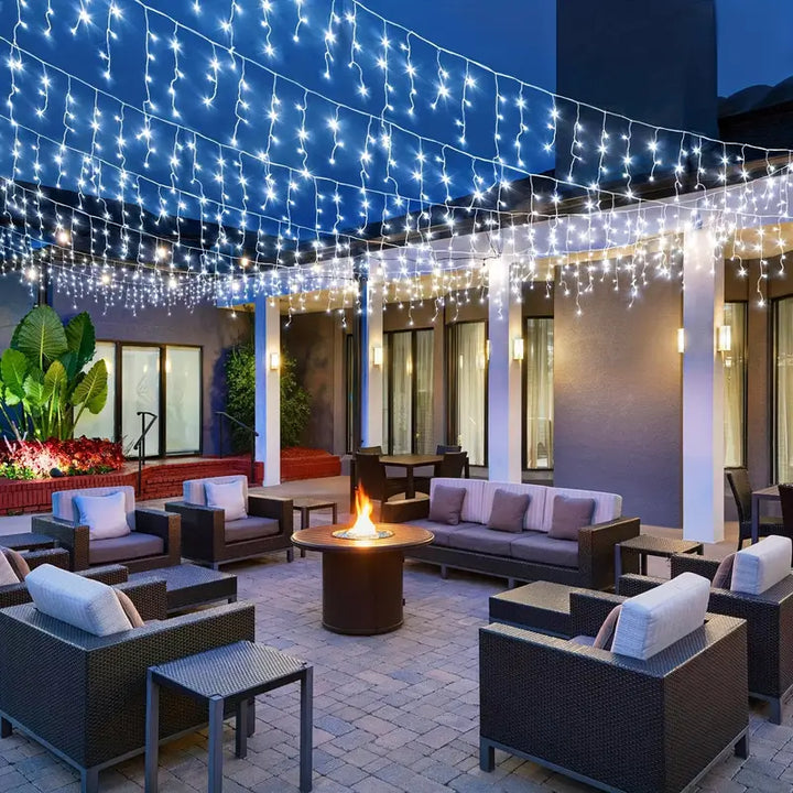 Instalatie Craciun 12 metri Franjuri cu LED-uri. Instalatiile sunt tip perdea luminoasa cu franjuri inegal