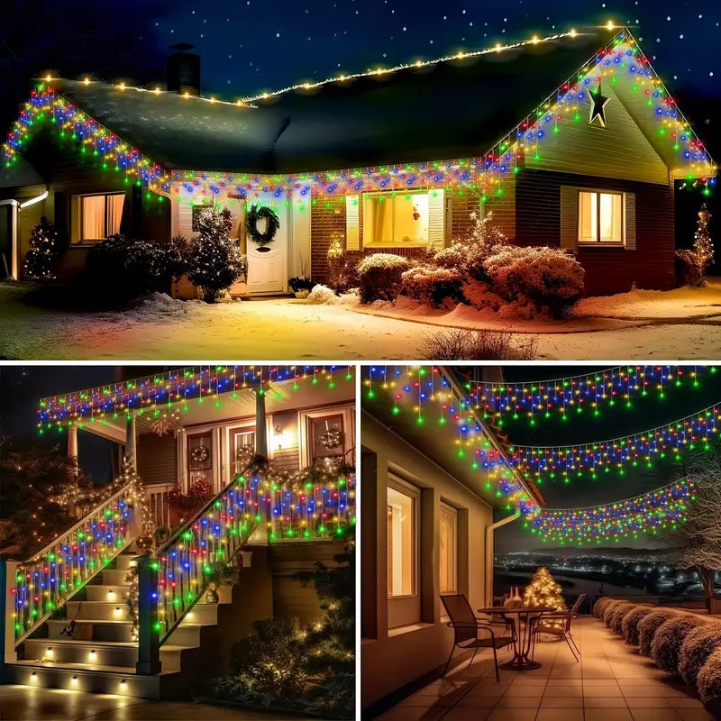 Instalatie Craciun 12 metri franjuri cu LED-uri multicolore