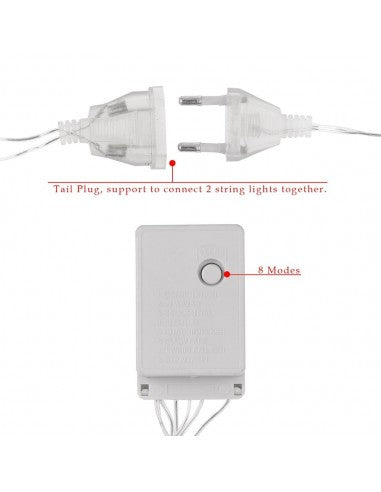 8 jocuri de lumini (combination, in waves, sequential, slow glow, chasing/ flash, slow fade, twinkle/ flash, steady on)