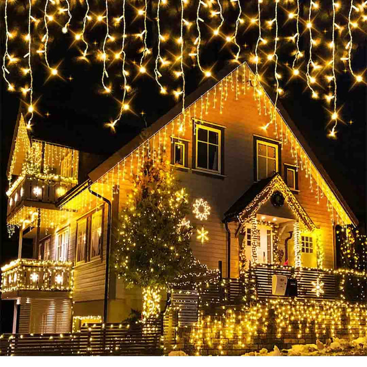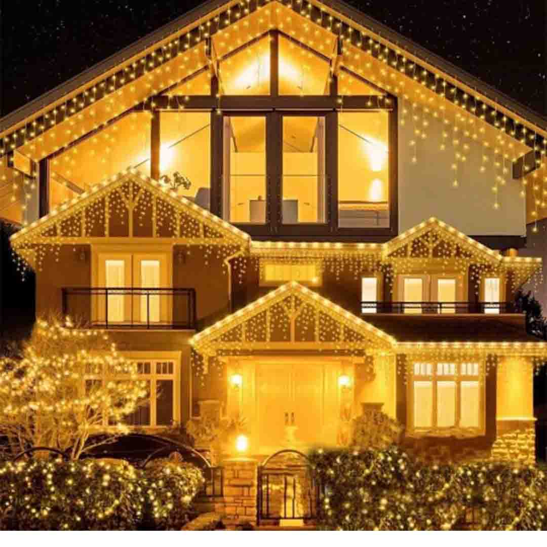 Instalatie Craciun 12 metri Franjuri cu LED-uri. Instalatiile sunt tip perdea luminoasa cu franjuri inegali