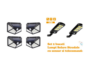 Set 4 Lampi solare 100 led senzor miscare + 2 lampi solare stradale Cadou