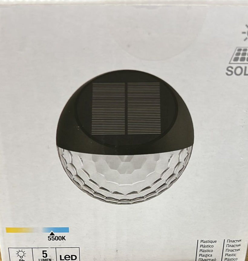 Aceasta aplica de perete solara, cu IP44, de culoare neagra, este ideala pentru iluminarea intrarii. Datorita modului sau de alimentare solar, produsul poate fi instalat cu usurinta oriunde si va ofera o solutie ecologica. Acest produs are 5500K si o intensitate luminoasa de 5 lumeni.