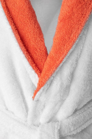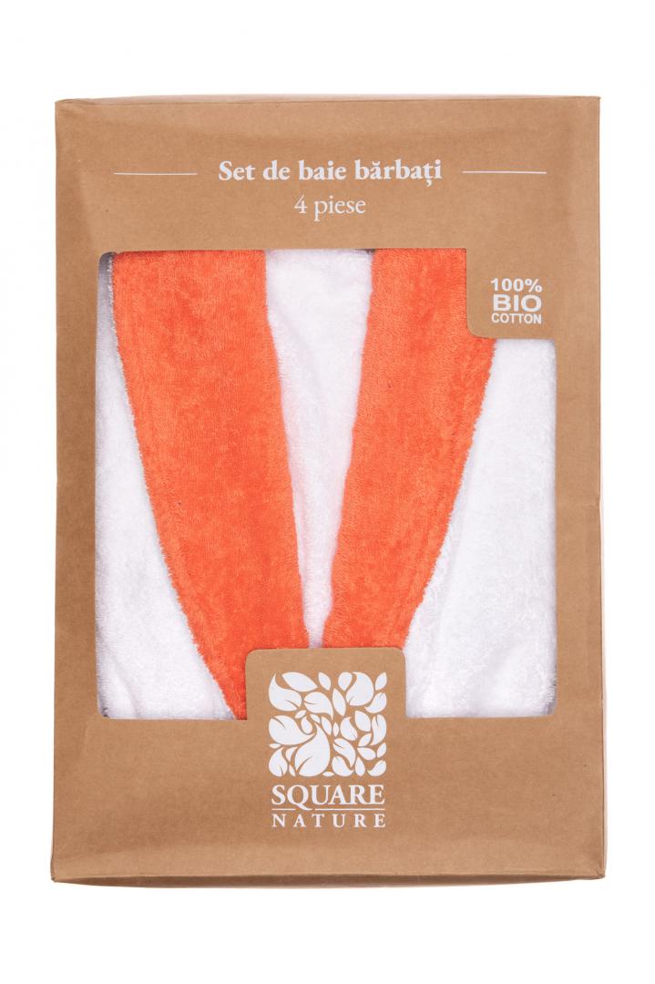 Set de baie Dama BBC Organic 4 piese . Setul contine : un halat de baie dama alb cu guler colorat coral, marime universala + un prosop de fata 30×50 cm + un prosop de baie 50×90 cm + papuci de baie decupati. Material : 100% Bumbac Organic , densitate 550 GSM