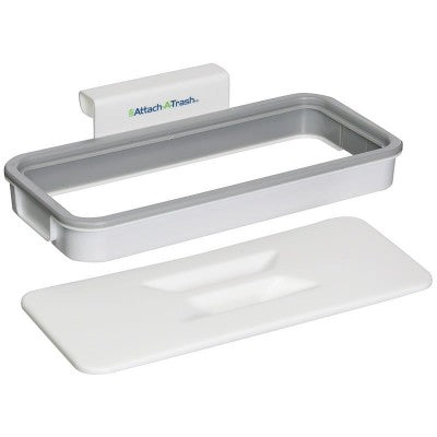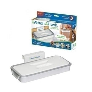 Suport sac de gunoi cu capac de montat pe usa, sertar, masa si pe blat. Attach A Trash, sustine greutate de 3 kg, portabil, il poti muta oriunde vrei, se monteaza imediat si este multifunctional, il poti folosi pe usa, pe blatul de la bucatarie sau oriunde ai nevoie.