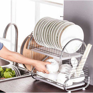 Suport vesela bucatarie etajat cu tavita de uscare + 6 suporti de pahare si 1 recipient mare de uscare pentru tacamuri, pe lateral